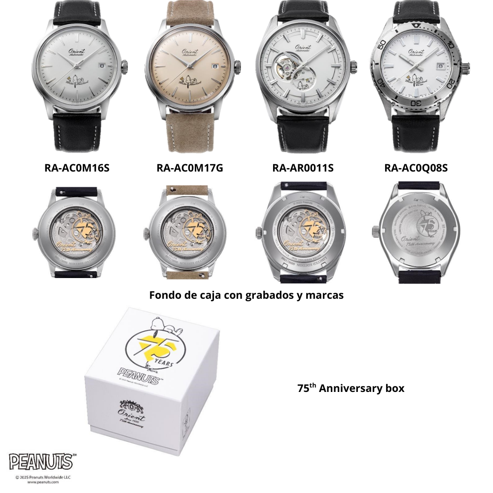 Fundada en 1950, Orient se ha consolidado como una marca de relojes de confianza gracias a sus relojes mecánicos de fabricación propia y a su presencia en más de 70 países. Otra marca mundialmente apreciada que celebra su 75.º aniversario es Peanuts, que también surgió en 1950 como una tira cómica en periódicos estadounidenses.